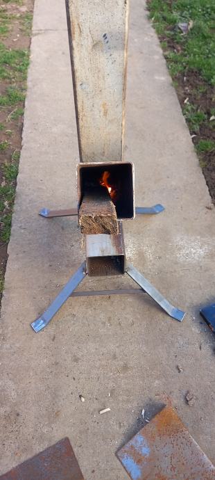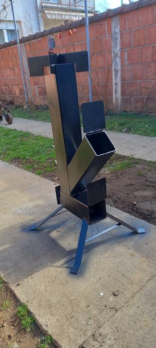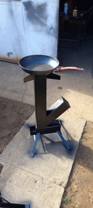 Novo,,kuhanje pečenje,roštiljanje,,mala količina drveta,sitnog,ili čak pelet,,velika izlazna temperatura,,prilikom izgaranja drveta i velikim dotokom zraka-HUČI,kao raketa te je po tome i dobila ime,,lagana i lako prenosiva,,za vrt,izlet,lov i ribolov,,cijevi 100x100mm,,u donjem ravnom dijelu s jedne strane ulaz zraka a s druge strane pepeljara,,u kosi dio ubacujete drva,,kroz okomitu cijev izlazi vatra,tj temperatura za pečenje,,postoji mogučnost dodataka za kotlič,,veliki lonac,,talandaru (veliki tanjur od inoxa),,095,,908 21 66