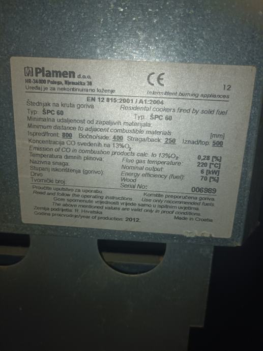 Prodajem peć/kamin/šporet Plamen Požega.