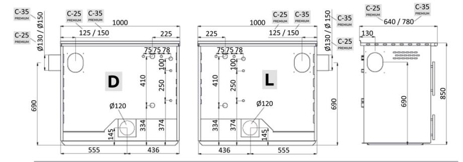 Kuhanje, pečenje, grijanje sanitarne vode i grijanje cijele kuće – centralno grijanje štednjakom na kruta goriva C-35 PREMIUM. Konstruiran jednako kvalitetno kao i modeli C-25 i C-35, ali s većom pećnicom i ložištem (panoramsko staklo). Potpuno novi vanjski dizajn štednjaka. Također, štednjak ima mogućnost podešavanja visine od 850 – 920 mm. Štednjak nema kutiju za drva.