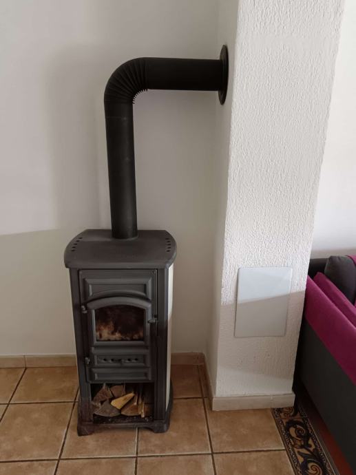 Vrlo je malo korištena, stoji kao rezerva uz centralno grijanje. Stara je oko 2 godine. Uz peć poklanjam i dimovod s koljenom i rozetom sa slike..
