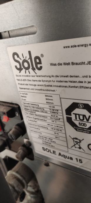 Sole Aqua 15 Etažna peć za centralno grijanje na drvene pelete. 4 g stara u odličnom stanju. Mogućnost kupnje Valliant pločastih radijatora sa svim ventilima u kompletu.