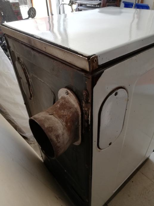 Širine 46 cm, sa dimnim priključcima i lijevo i desno i otraga i sa strane. Priključak na dimnjak prilog.