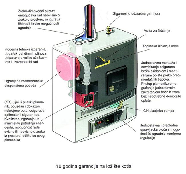 CTC950, kombinirani zidni uljni kotao star 5 god., 23.3 kW, cisterna plastična 1700 L, sve redovito servisirano sa kompletnim priborom.