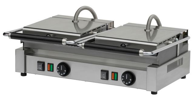 Opis: roštilj s rebrastom donjom i gornjom pločom za pečenje. 2 površine za pečenje mogu se zasebno kontrolirati, kontrola temperature između 50...300 °C.