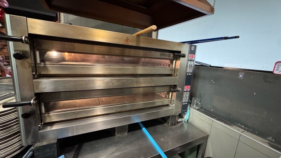 Treba ju samo oprati izvana i to je to. 12 pizza od 32cm stane u nju. Trenutno peć se koristi jer se čeka nova. Uz nju dolazi i pjeskareni kamen koji je rađen po mjeri za tu peć da se može peci na 340-350 stupnjeva, placen 1500€, prije 3 mjeseca, Odlična peć. Cijena je fiksna