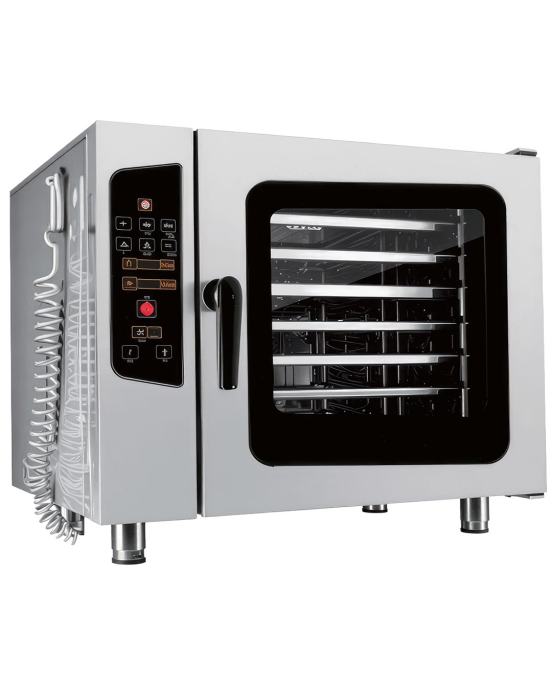Ital Form SSW-06D je visokoprofesionalna inteligentna duvaljka kapaciteta šest nivoa, dizajnirana za restorane i hotele koji zahtevaju maksimalnu svestranost i veliku snagu. Ovaj uređaj integriše funkcije parenja, pečenja i kombinovanog režima rada, omogućavajući vrhunsku pripremu najrazličitijih jela i peciva u jednoj mašini. Ključna prednost modela SSW-06D je sistem za automatsko samočišćenje koji samostalno ubrizgava sredstva i vrši drenažu vode, čime se štedi dragoceno vreme i osigurava besprekorna higijena komore. Uz petostepenu kontrolu programa, devet podesivih menija i dvoslojno toplotno-reflektujuće kaljeno staklo, ova duvaljka garantuje vrhunsku energetsku efikasnost i savršene kulinarske rezultate čak i pri maksimalnom opterećenju.
