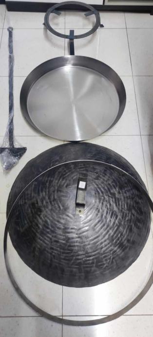 nova peka/saće od kovanog željeza sa inox posudom..set se sastoji od postolja,posude,ringa,peke,lopatice..