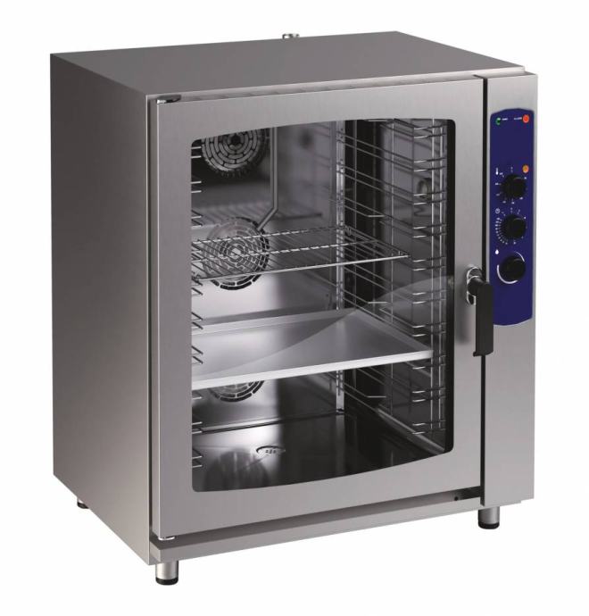 Unutarnja i vanjska konstrukcija od nehrđajućeg čelika - opremljena za GN1/1 i 400x600 - komora za pečenje sa zaobljenim kutovima - analogna kontrola, intuitivno i jednostavno za korištenje - spušteno dno za sve modele s ispusnim ventilom - automatsko uklanjanje ventilatora - brzo hlađenje komore - unutarnja rasvjeta - prešana unutarnja brtva - vrata s dvostrukim staklom, reverzibilna - razmak između ladica 75 mm - opremljen sa jednom rešetkom GN1/1.