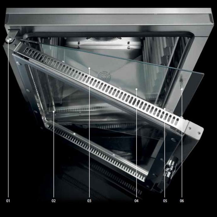 kapaciteta (odvisno od izvedbe) 4 - 5 - 6 - 7 - 10 pekačev ali rešetk 600x400 mm ali GN 1/1.