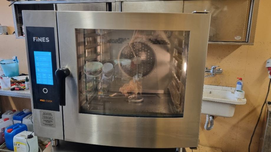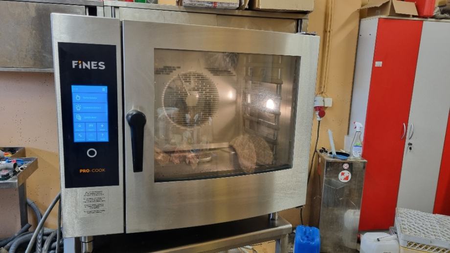 Praktički neupotrebljenu parnokonvekcijsku peč - konvektomat Fines, sve funkcije, kuhanje, pečenje, kombinacija, touch displey, samopralni, sa postoljem, vrhunski, sa svim receptima i programima, prodajemo. U upotrebi samo 2 meseca!! Cena 3900 eur. Može i dostava osobno ili putem Intereurope.