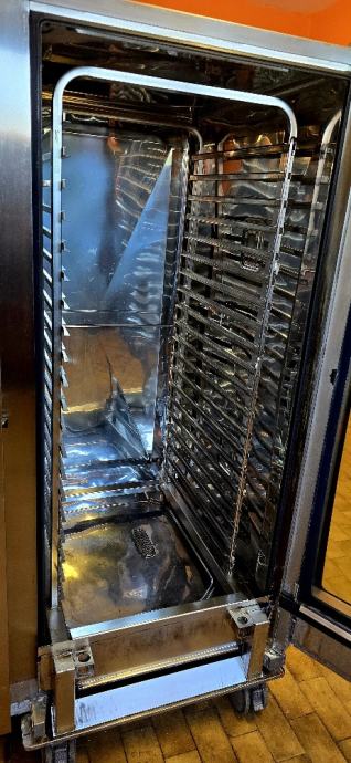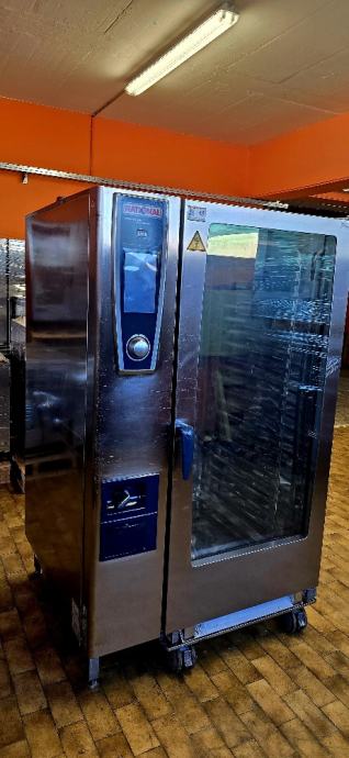Elektro Parno konvekcijsko pečnicu Rational SCC 202, WE Care Control, kapacitet 20xGN 2/1, ili 40xGN 1/1, sa kolicima, za 300-500 obroka, primeren za svadbene salone, cateringe, družbene prehrane, hotele, veče restorane, škole itd. Touch display, samopranje, programi za vse vrste jela... U konvektomatu možete da pečete, kuhate i radite šta god hočete. Konvektomat je veoma dobro očuvan, pregledan sa strane servisera ...garancija 6 meseci!. Cijena 10990 eur. Na lageru i ostali konvektomati svih kapaciteta...prije dolazka obavezno nazvati! Servis i Prodaja Ugostiteljska Opreme! Več 35 godina!