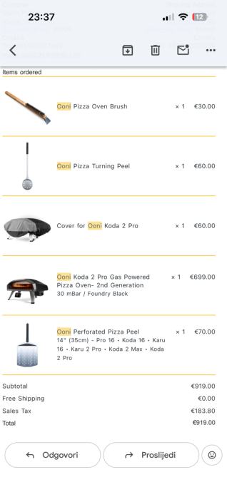 Prodajem plinsku pizza peć Ooni Koda 2 pro, ceradu za peć, četku za čišćenje peći, lopatu za stavljanje i lopatu za vađenje pizza( plaćeno 920€). Kupljena je krajem srpnja ove godine te je ispekla sveukupno 50ak pizza. Prodajem ju jer mi je nepotrebna, kupio sam si električnu pizza peć i otvaram pizzeriu pa mi je viška.Za više slika slobodno mi se javite.