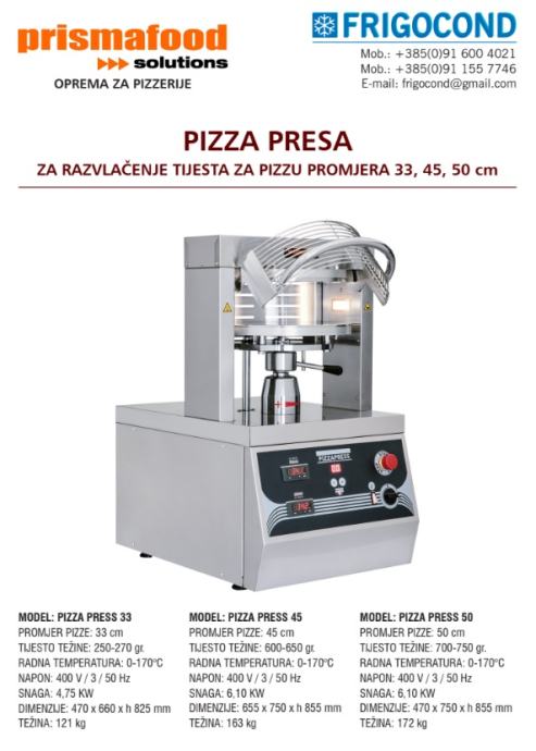 U ponudi tri modela za promjer pizza 330mm,450mm,500mm