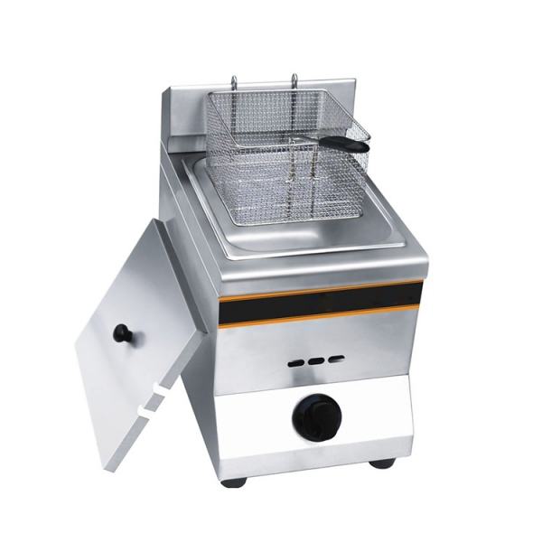 Profesionalna plinska friteza s kapacitetom do 8 litara ulja. Idealna za ugostiteljsku upotrebu – brzo zagrijavanje i pouzdan rad.