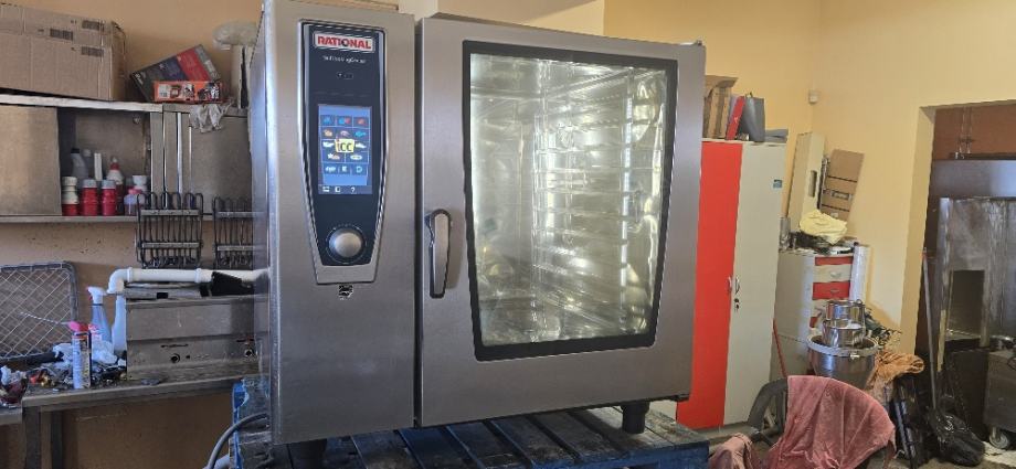 Odlično očuvan plinsko-parni konvekcijski peć – konvektomat Rational SCC 102 WE, kapaciteta 10xGN 2/1 ili 20xGN 1/1, za 150–300 obroka, pogodan za menze, društvenu prehranu, hotele, veće ugostiteljske objekte, škole itd.