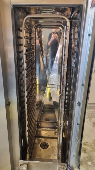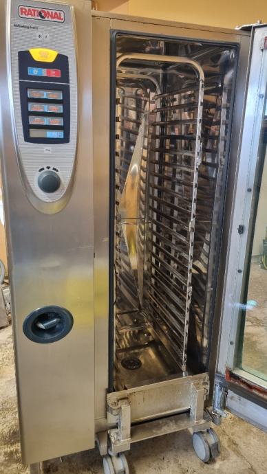 Parno konvekcijsko pečnicu Rational SCC 201, sa kolicima, kapacitet 20xGN 1/1, za 150-300 obroka, primeren za menze, svatbene salone, catering, hotele, veče restorane, škole itd. V konvektomatu možete da pečete, kuhate i radite šta god hočete. U konvektomatu su svi recepti za pripremanje svih vrsta hrane! Konvektomat je veoma dobro očuvan, pregledan sa strane servisera ... Na lageru i ostali konvektomati svih kapaciteta...prije dolazka obavezno nazvati! Cijena 7900 eur.