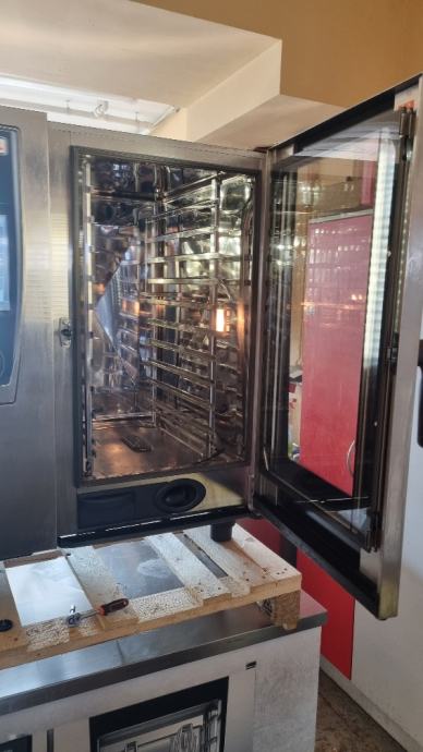 Veoma dobro očuvanu i malo upotrebljavanu vrhunsku parno konvekcijsko pečnicu Rational SCC WE, stara 3 godine, kapacitet 10xGN 1/1, za 80-150 obroka, V konvektomatu možete da pečete, kuhate i radite šta god hočete. Samočiščenje sa tabletama. LED osvetljenje. Konvektomat je veoma dobro očuvan, pregledan sa strane servisera, touch display, svi programi i recepti za sve vrste jela.. .. Na lageru i ostali konvektomati svih kapaciteta...prije dolazka obavezno nazvati! Cijena 7500 eur! Šaljemo i putem Intereurope.