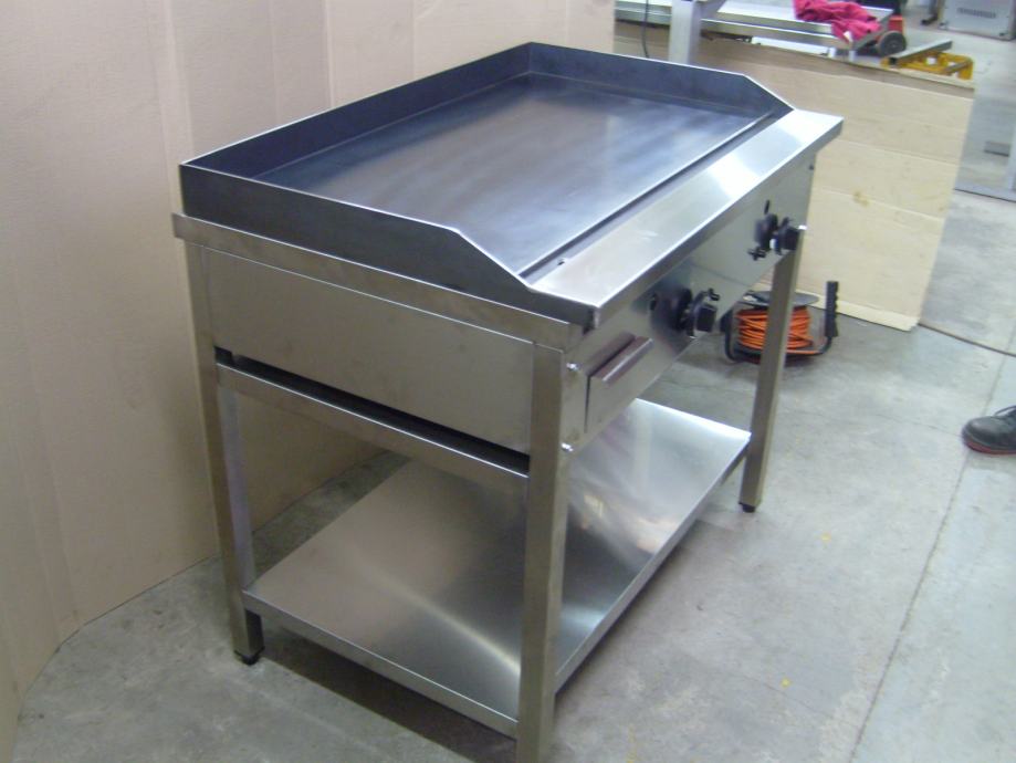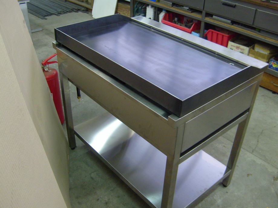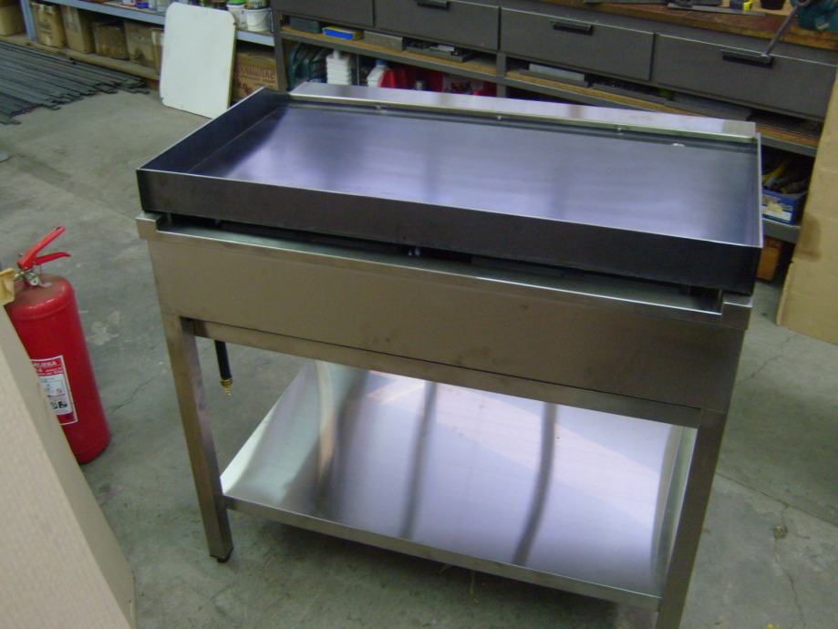 Izrađen je od inoxa, s crnom roštilj pločom od visokotemperaturnog čelika glatke površine, debljina ploče je 10 mm.