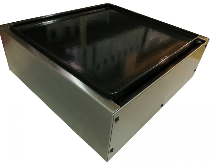 Kućište je od inox lima, roštilj ploča je lijevana s površinskom zaštitom od emajla.