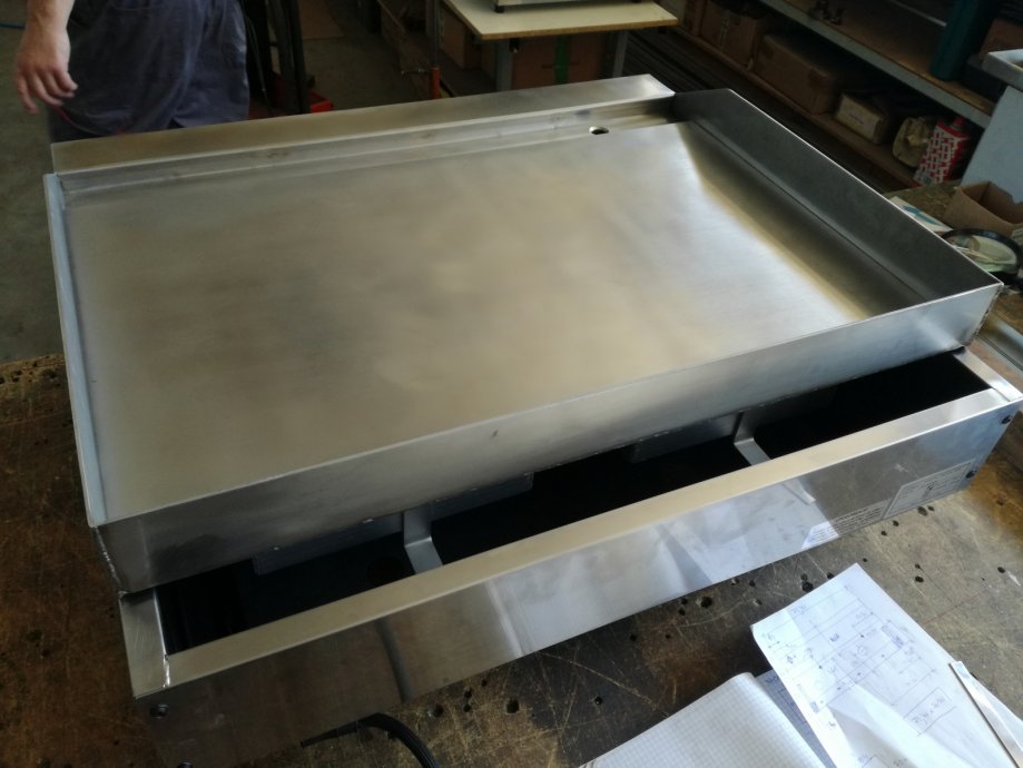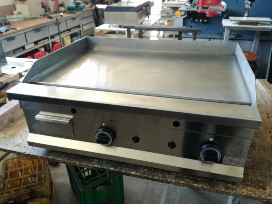 Izrađen je od inoxa s crnom roštilj pločom od visokotemperaturnog čelika glatke površine, debljina ploče je 10 mm.