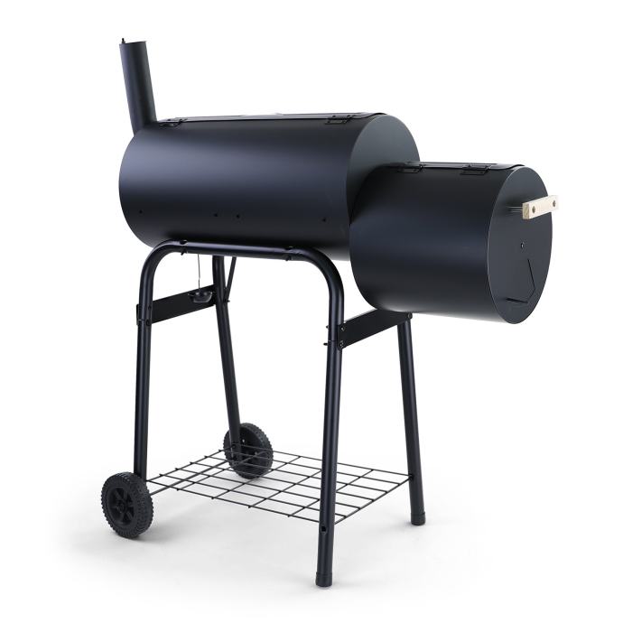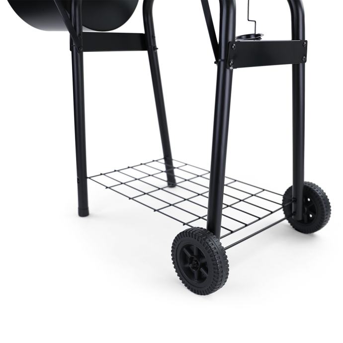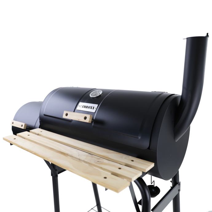 - Opremljen: poklopcem s integriranim termometrom, dva prostora za odlaganje pribora za roštilj i odvojenom dimnom komorom za neizravno pečenje / grijanje