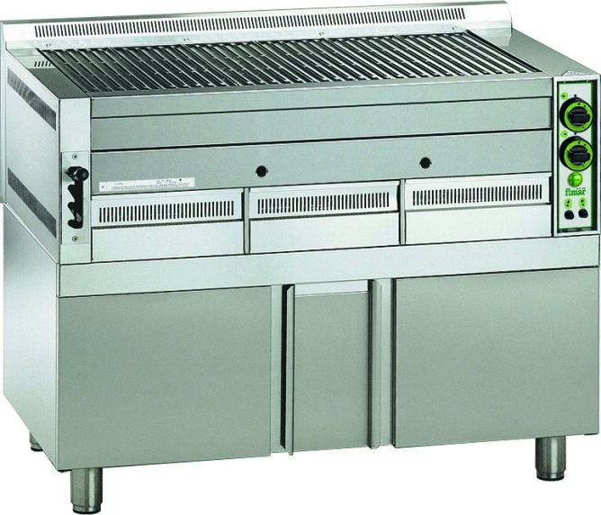 Aparat je opremljen mat emajliranom rešetkom od lijevanog željeza koja se može koristiti s jedne strane za meso, a s druge za ribu.