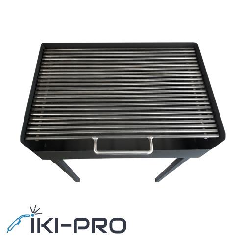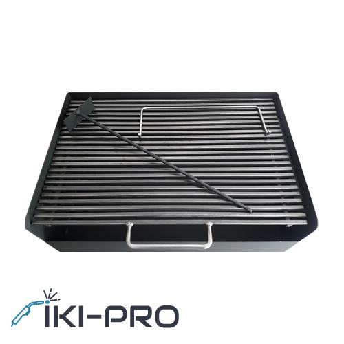 Masivan i sklopivi roštilj izrađen od kotlovskog čelika s podesivom visinom. Noge se sklapaju unutar ložišta radi lakšeg transporta, a ručke sa strane olakšavaju prenošenje. Razmak između ognjišta i mreže pažljivo je određen za optimalnu temperaturu pečenja. Dimenzije: 60 x 40 cm, moguće i po narudžbi.