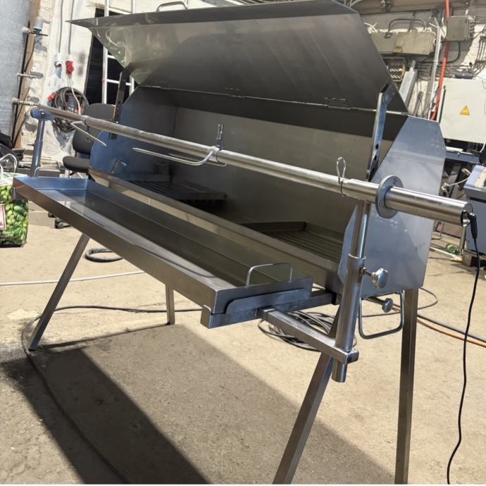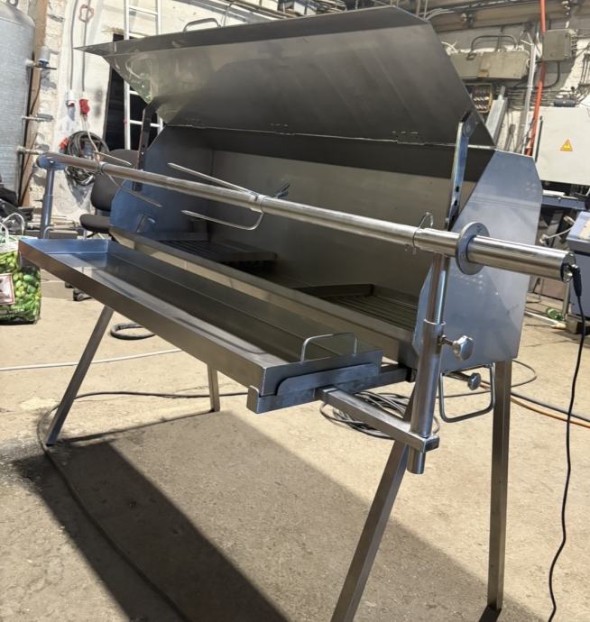 Izrađena od kvalitetnog inoxa, čvrste i stabilne konstrukcije, pogodna za prasad, janjce, meso ispod peke, roštiljanje i ostalu pripremu hrane.