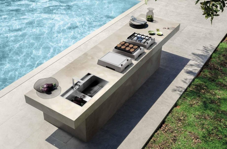Ugradbeni električni roštilj možete kombinirati uz različite materijale tako da ga jednostavno ugradite u vanjsku kuhinjsku radnu ploču.