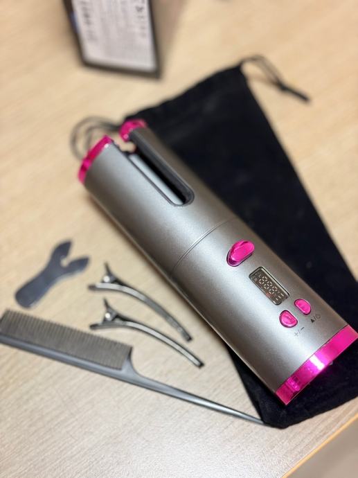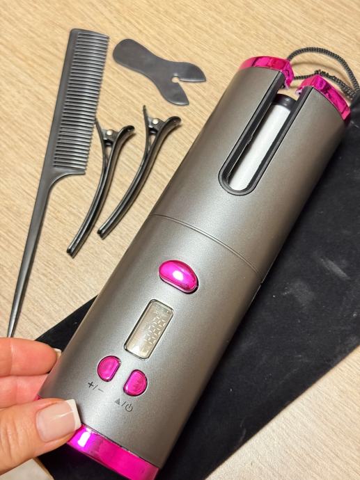 Tako jak i brz, kovrče gotove u par sekundi, nakon sto uvije kosu odbrojava i daje zvučne signale tako da nemoze izgoriti kosu. Nevjerovatno praktičan dolazi sa svojom torbicom, dvije kopče i češljem. Bežičan!Samo isproban