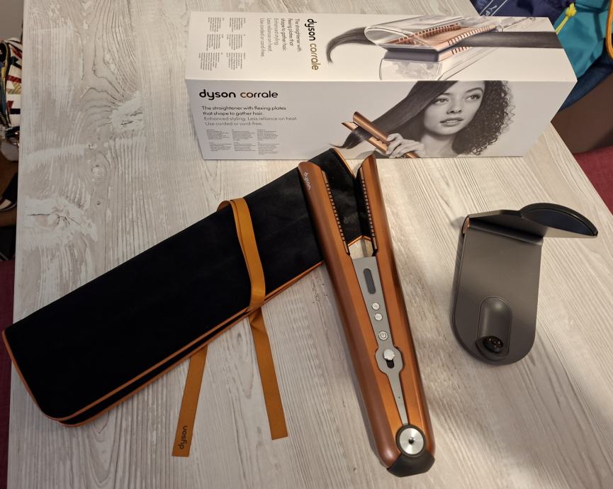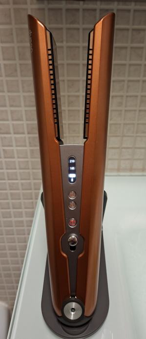 Dyson Corrale bežićna peglu za kosu s fleksibilnim pločama koie se prilagođavaju vlasi i omogućuju oblikovanje uz manje topline i manje oštećenja kose. Temperature 165°C, 185°C i 210°C. Radi sa žicom i bez