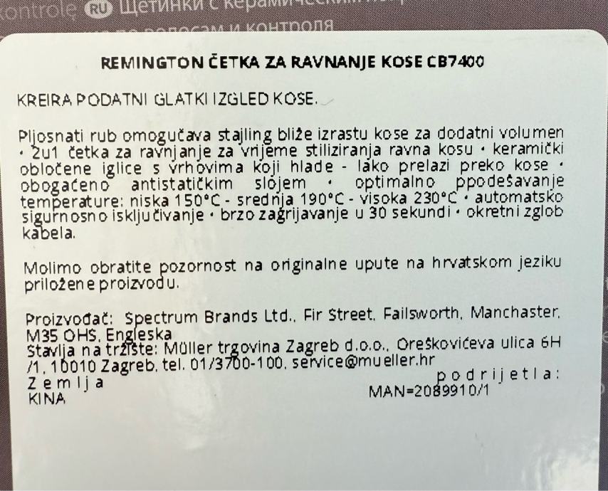 Prodajem Remington Straight Brush četku za ravnanje kose, model CB7400, potpuno novu i neotvorenu.