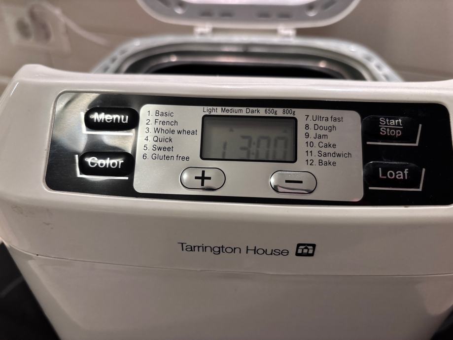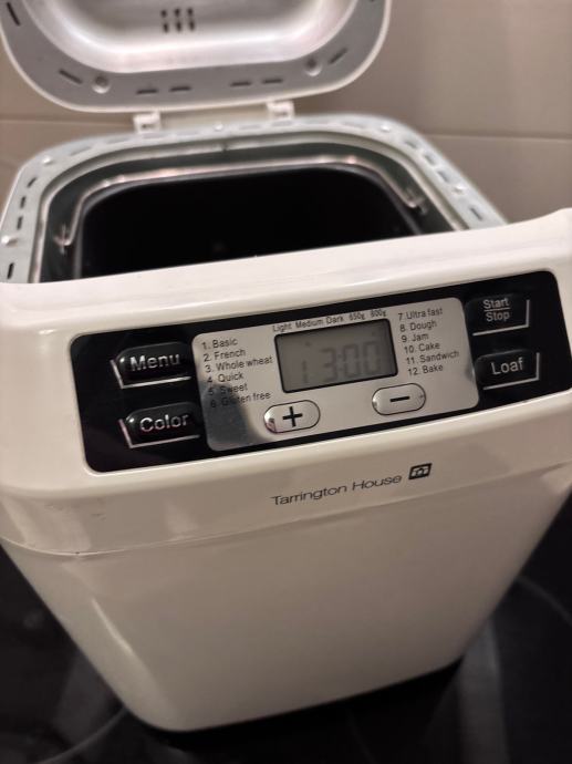 Tarrington House pekač za kruh model BM 2700. ima snagu od 550 W, može peći kruh do 800 grama, ima LCD zaslon, 12 programa za pečenje, programiranje do 13 sati, opciju biranja između 3 razine pečenja (svijetlo, srednje, tamno) te funkciju održavanja topline.