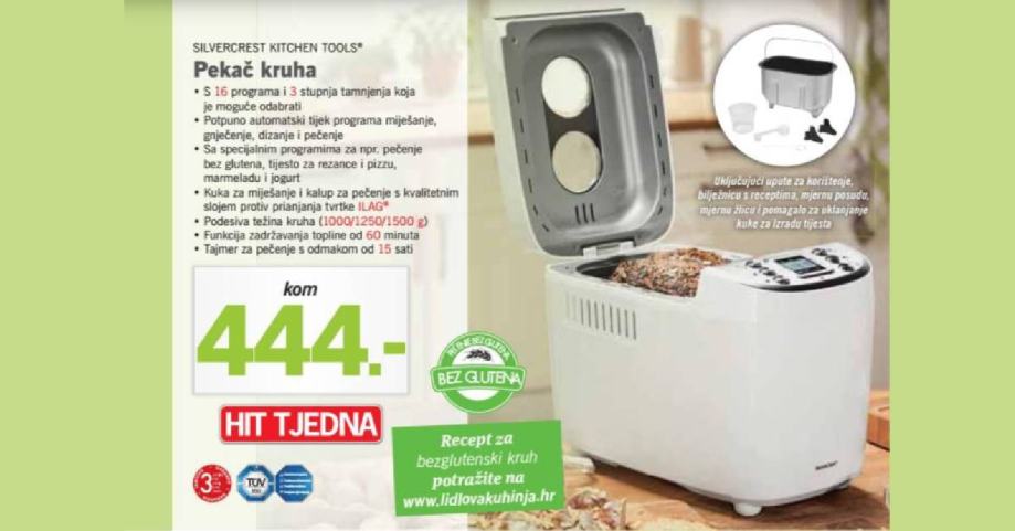 Pekač kruha iz lidla. Malo korišten, ispravan sa svim dijelovima. https://pekackruha.com/silvercrest-pekac-kruha-iz-lidl-trgovina/