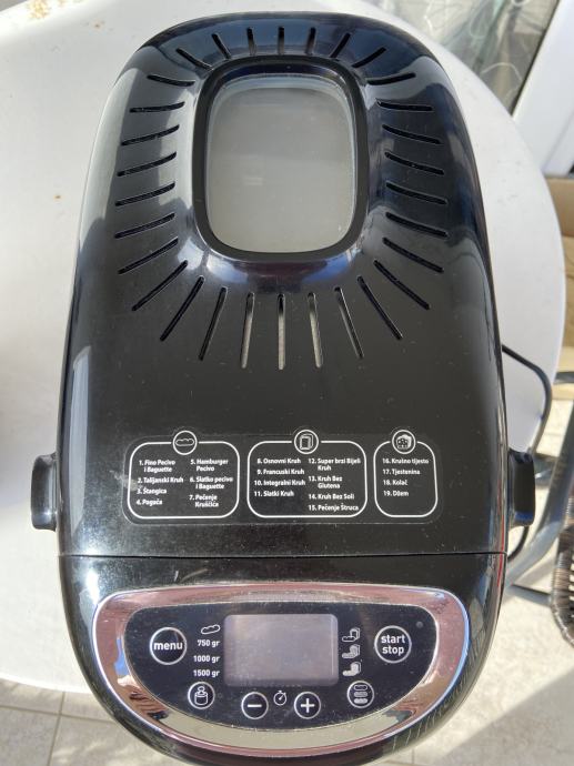 Pekac za kruh rabljen 15-20 puta. 19 programa, 3 težine (750g, 1000g, 1500g), 3 razine tamnjenja. Garancija istekla.