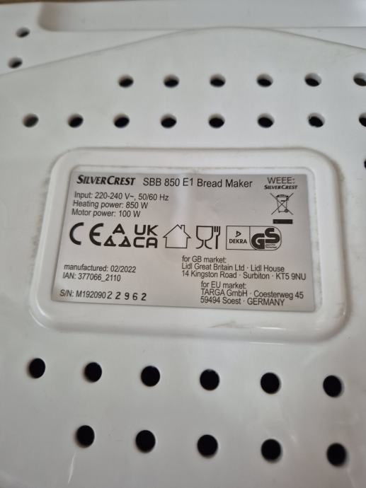 Silvercrest pekač kruha