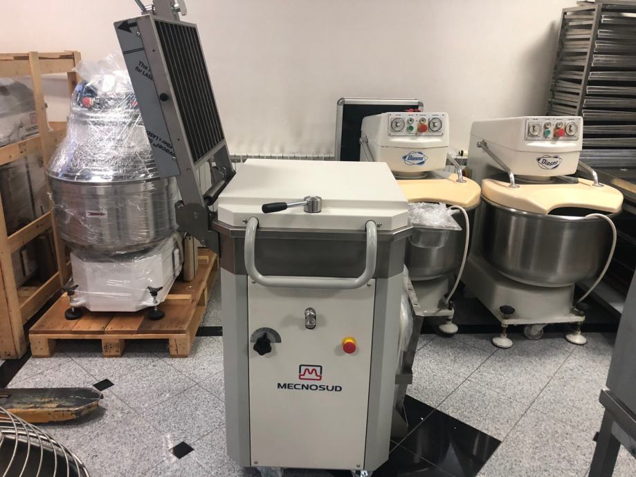 Djelilica hidraulična za kruh 5-17 kg tijesta na 20kom sa dodatkom za podjelu bageta i peciva. Uz dodatak je moguće imat više različitih rešetki-noževa za podjelu bageta ili peciva pravokutnih oblika.