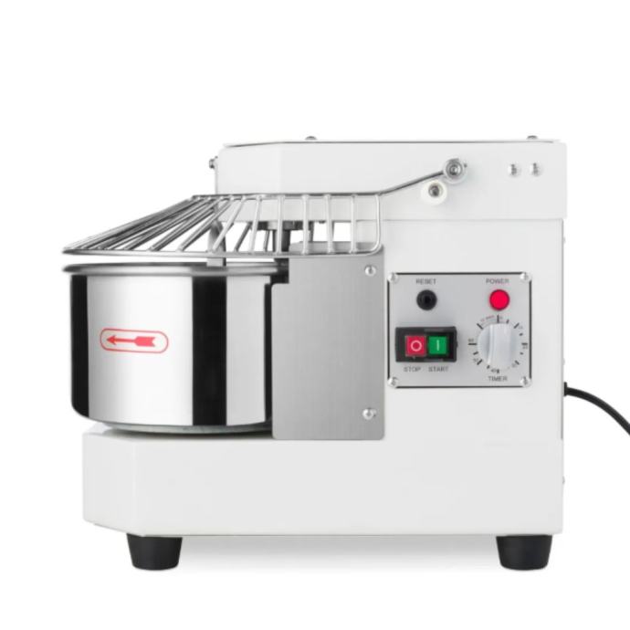 Mešenje velikih količina testa ručno može biti naporan posao. Uz pomoć ovog miksera za testo zapremine 8L, lako možete pretvoriti 4,5 kg sastojaka u glatko i ujednačeno testo. Maksimalna količina brašna iznosi 3 kg, dok je maksimalna količina testa 4,5 kg. Moguće je mesiti i manje količine, ali ne manje od 1,5 kg testa. I kuka za testo i posuda za mešanje rotiraju kako bi svi sastojci bili ravnomerno umešani i spremni za pečenje. Ovaj mikser je idealan dodatak svakoj profesionalnoj kuhinji u restoranima, pekarama i kafićima. Zahvaljujući praktičnom tajmeru, možete ostaviti uređaj da radi samostalno.