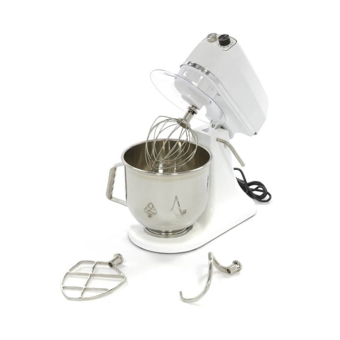 Mikser dolazi sa ravnom mutilicom od nerđajućeg čelika za savršene smese za kolače i pite, žicom za mućenje od nerđajućeg čelika idealnom za belanca i pavlaku, kao i kukom za testo od nerđajućeg čelika za mešenje testa za picu i hleb.