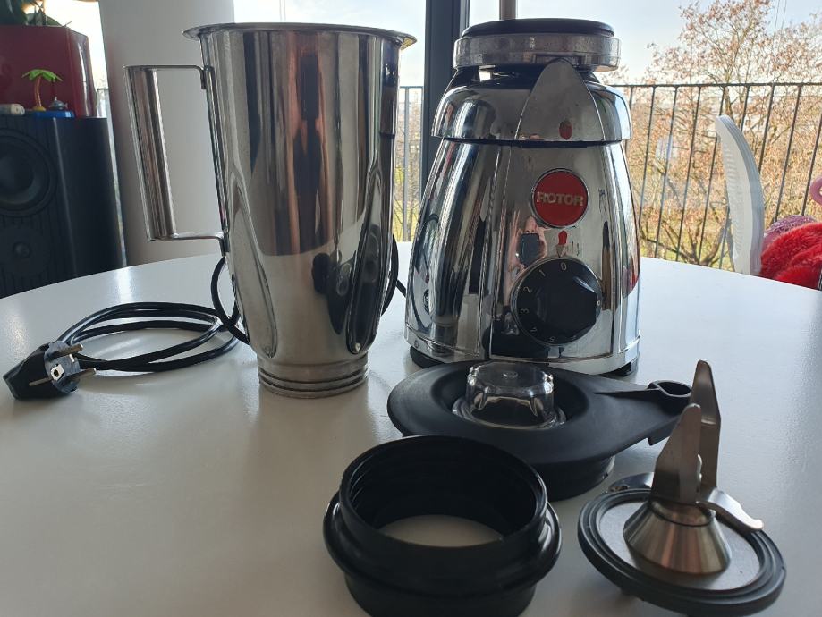 Mixer Rotor je vodeca švicarska firma poznata po najkvalitetnijim "besmrtnim" ugostiteljskim mixerima . Uz njega dajem novu nekoristenu inox blender-posudu od 2l, kao i noz, (nova cjena 360€) mikser je skoro nekoristen.Cijena novog je oko 1200 €.Blender ima visokokvalitetne, oštre i snažne noževe od inoxa,tako da ih možemo koristiti za blendanje svih vrsta voća, povrća i mesa.Snažne i jake oštrice mogu lako zdrobiti led i tvrde namirnice poput oraha ili samljeti kavu. Ima 8 brzina koje razvijaju broj okretaja od 1000- 17000 u minuti, jednostavno i lako za ciscenje i odrzavanje, automatsko zaustavljanje motora kod otklanjanja poklopca, tezina oko 7 kg.