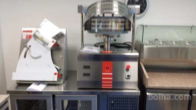 Mašina je namijenjena za pripremu tijesta u krug na koji se nanose nadjevi.Mašina oblikuje grudu tijesta za pizzu određenog promjera i zagrijava.U ponudi su mašine za pripremu tijesta PROMJERA OD 30 DO 50 CM.