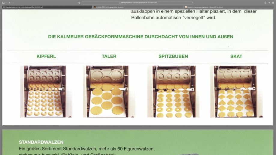 Stroj za kekse Kalmeijer, sa 5 valjaka ( kiflice, zvijezdice, zvijezdice s rupom, šapice, i veliki okrugli fi 10cm) te 130 limova. Stroj je u odličnom stanju, kapacitet je 3-5 kg tijesta u minuti. Cijena je s PDV-om.