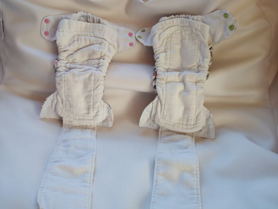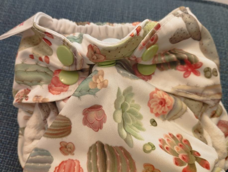 Ove pelene također imaju i gumbić na sredini koji kad se zakopča ostavlja slobodnim prostor za pupak kako pelena ne bi smetala novorođenčetu dok pupak ne zacijeli (vidi zadnje dvije slike).