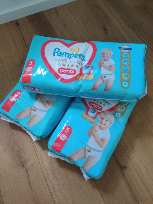 Prodajem tri neotvorena paketa Pampers premium care pelena gaćica veličine 5 (12-17 kg). U svakom od paketa se nalazi 52 komada pelena, odnosno 156 komada ukupno.