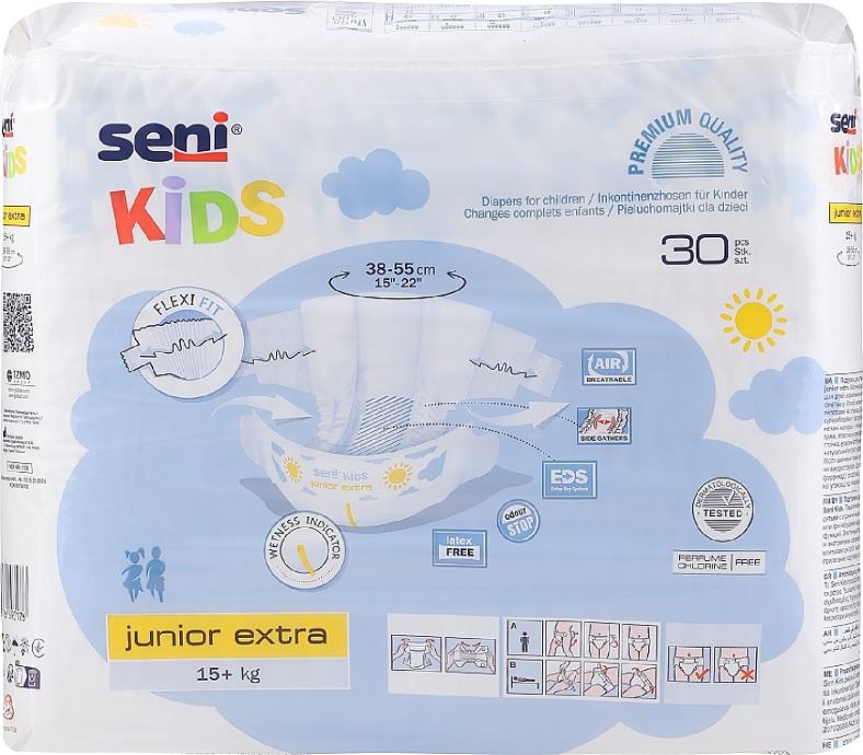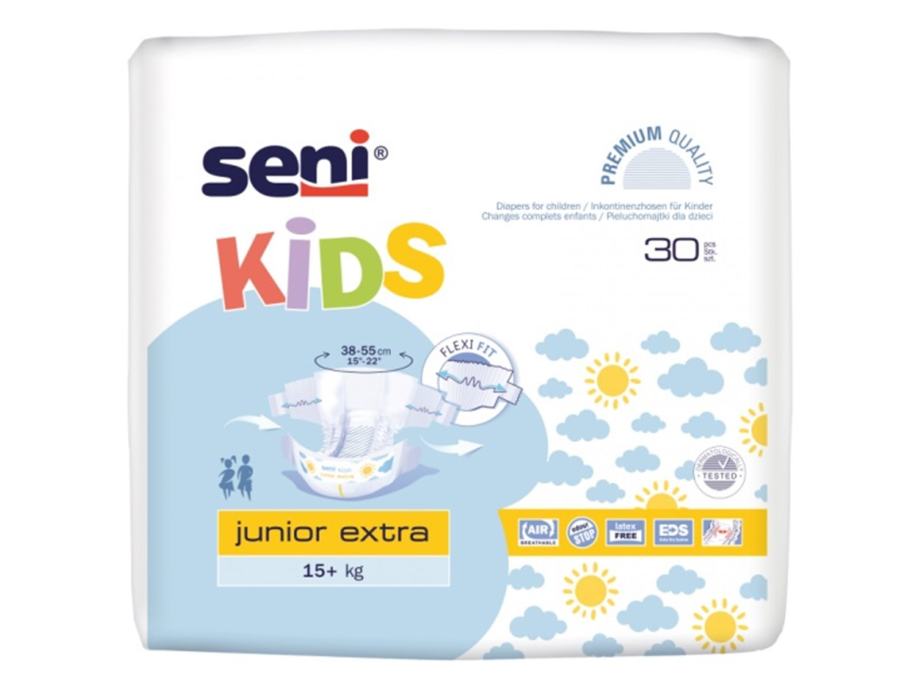 Seni kids pelene Junior Extra 15kg+, novo zapakirano, 30kom/paket, ostalo viška, lot 2028-2029