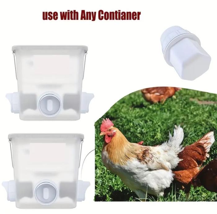 Prodajem automatske hranilice za perad.. Lako se montiraju se na kante, bačve ili slične posude.. Nema razbacivanja hrane..Cijena za komad 2,50 Eura.. Šaljemo poštom, plačanje pouzećem...