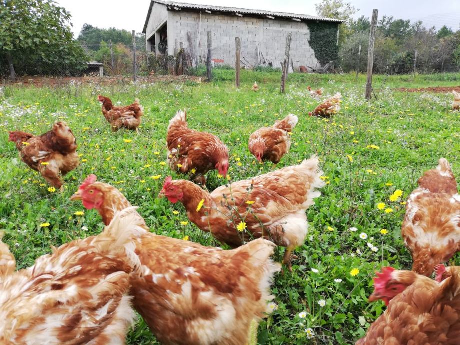 Domaća kokosja jaja ,kokosi su na otvorenom prostoru