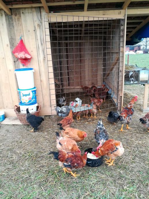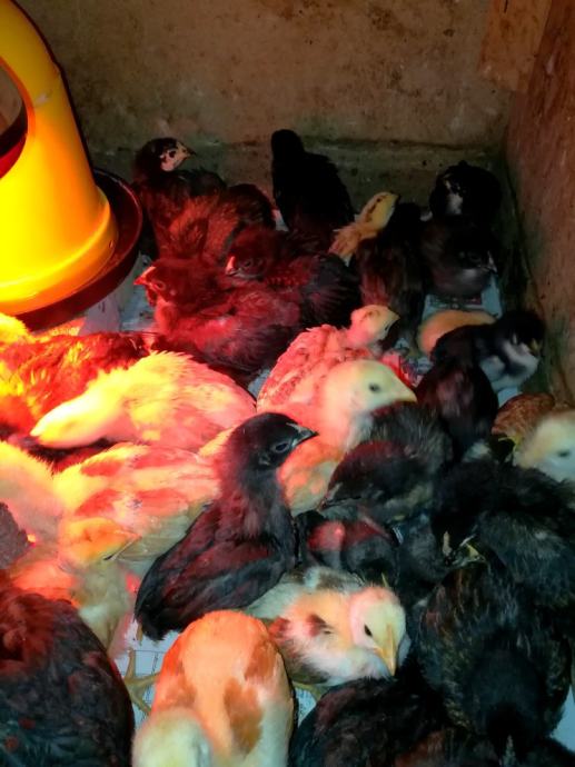 Prodajem domace pilice od vlastitog maticnog jata,, tri tjedna stare. Pilici su mijesani teski soj crvenih "talijanki", sasso teskih nesilica, australorpa i madjarske nesilice harco. Imaju dosta brz prirast, a i odlicne su nesilice. Bit ce velike koke, cca 3, 3,5kg, a i pjetlici su dobri za izhranit posto dobro napreduju... 15 kn/komad mijesano, samo kokice 20 kn komad i pjetlici 10 kn/komad. Pilici se legu svaki tjedan, tako da primam i predbiljezbe za iduce slobodne pilice, koji ce biti dostupni od 15.4. nadalje...