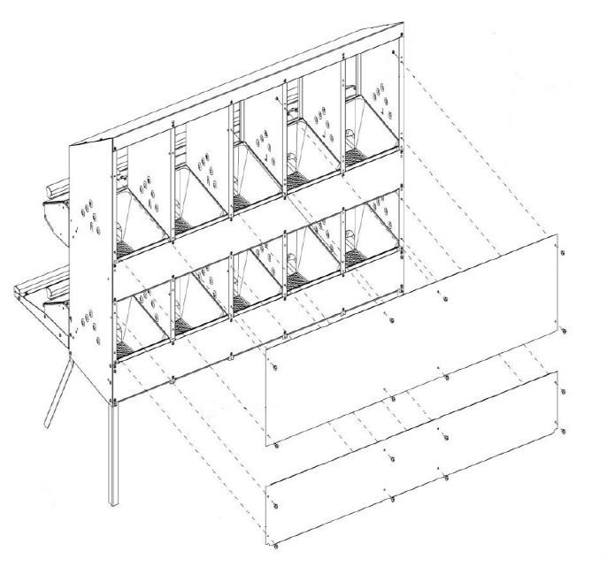 Prodajem gnijezdo za nesilice, gnijezdo je podijeljeno na 10 odjeljaka (gnijezda), 5 gnijezda u jednom redu, pogodno za do 70 kokoši.