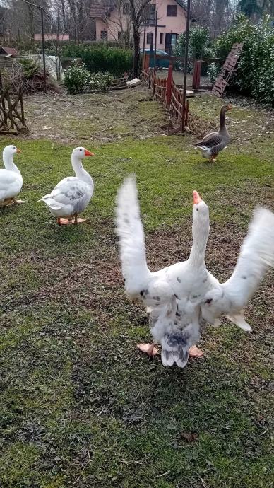 Prodajem godinu dana stare guske težina žive guske je cca 6 kg. Cijena je 10 eura po kilogramu.